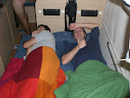 C’è chi fa compagnia a Torsani al volante, c’è chi cerca con l’ipod alle orecchie di schiacciare invano un pisolino nei posti intorno al tavolo...invano...Da OKTOBERFEST 2008 (Salva)
